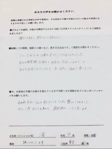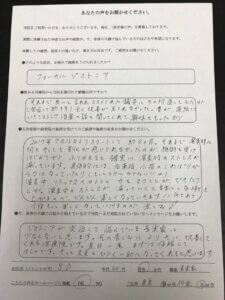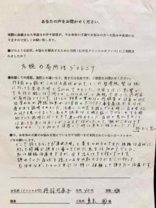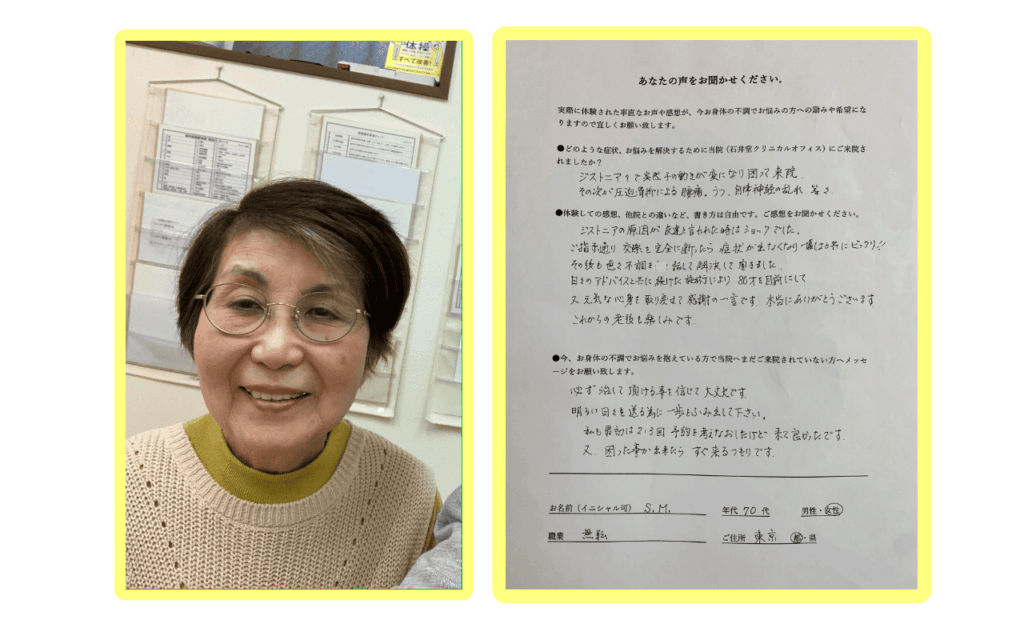 ジストニア・イップスにお悩みだった方から頂いた喜びの感想文 専門家へのご相談はこちら 2025.11.212025.11.24 眼瞼痙攣にお悩みの患者様からの感想文 感想を見る 頚部ジストニアにお悩みの患者様からの感想文 感想を見る 野球の送球イップスにお悩みの患者様からラインにて感謝のお礼を頂きました 感想を見る うつ病、痙性斜頸(ジストニア)にお悩みの患者様からの感想文 感想を見る 書痙(ジストニア)にお悩みの患者様からの感想文 感想を見る 野球の送球イップス・ジストニアにお悩みの患者様からの感想文 感想を見る ギターのフォーカルジストニアにお悩みの患者様からの感想文 感想を見る ダーツのイップスにお悩みの患者様からの感想文 感想を見る ピアノのイップス・フォーカルジストニアにお悩みの患者様からの感想文 感想を見る 眼瞼痙攣のジストニアにお悩みの患者様からの感想文 感想を見る 踊りのイップスにお悩みの患者様からの感想文 感想を見る ゴルフのイップス・ジストニアにお悩みの患者様からの感想文 感想を見る 野球の送球イップス・発声障害で悩む患者様からの感想文 感想を見る 頸部ジストニア・転換性障害で悩む患者様からの感想文 感想を見る 野球イップスで悩む患者様からの感想文 感想を見る 楽器(ギター)イップスで悩む患者様からの感想文 感想を見る 卓球のサーブ、フォアドライブイップスで悩む患者様からの感想文 感想を見る フルートイップスで悩む患者様からの感想文 感想を見る 左腕の局所性ジストニアにお悩みの患者様からの感想文&動画 感想を見る 痙性斜頸(頚部ジストニア)にお悩みの患者様からの感想文 感想を見る 痙性斜頸(頚部ジストニア)にお悩みの患者様からの感想文 感想を見る