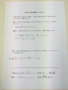 ●体験しての感想、他院との違いなど、書き方は自由です。ご感想をお聞かせください。